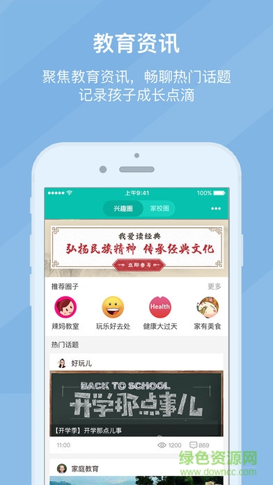 兴趣圈:教师、家长一起参与的热门话题讨论圈,交流分享我的观点。