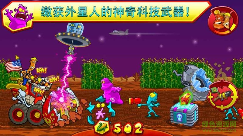 入侵美国农场手游是一款超好玩的休闲益智类的跑酷手游,这款游戏为玩家带来了一次全新的游戏体验,外星人要入侵你的农场,收割你的玉米,你必须为此拿出实际行动来,开启玉米收割机去杀死那些怪物。喜欢这款游戏的朋友就赶快来绿色资源网下载试玩吧!
