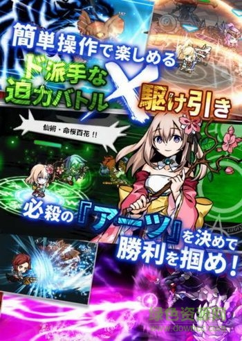 另外游戏中,身为王国守护者的玩家们还可以从异世界里召唤各式各样的英雄登场参战(登场英雄包括童话角色或是历史名人等等,并将会邀请包括「悠木碧、五十岚裕美、绪方贤一、大冢芳忠」等在内的人气声优们参与配音演出),这些英雄不但可以透过战斗来提升熟练度等级,或是使用道具进行职业升级的强化进化,让自己的英雄不断成长茁壮,而且部分英雄还可以在战斗时施展华丽强大的必杀技「Arts」(アーツ)来左右战局,也让战斗的气氛与节奏更加高涨刺激,带给玩家们更火热的攻防对战乐趣!
