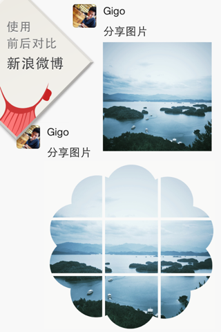 9Cut是一款把照片裁切成9块来上传后拼贴为1张大图的应用。用它你就可以告别只发布1张小缩略图而得到9张拼成的夺人眼球的震撼大图啦,实乃刷屏利器!