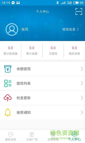 个人信息管理,个人账户余额,快速提现,快速了解自己的投递收益