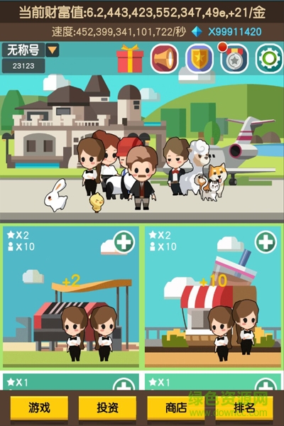 我要当首富游戏是一款实现了内购是模拟经营手游。在游戏中玩家需要不断地经营你的地盘,开个店、建个厂都可以,还可以招聘保安、购买豪车,享受虚拟时空下的土豪体验!快来绿色资源网下载吧。