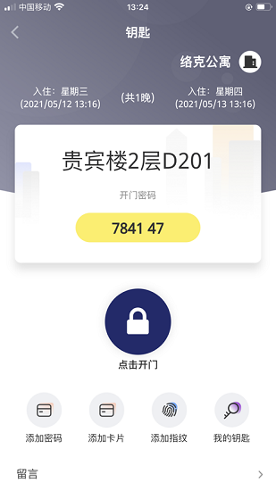 清晰的看到获得的电子房卡,所有的房卡信息都能直接查看。