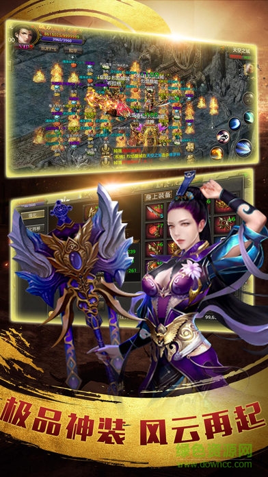 经典皇城战、公会战一触即发,千人同屏震撼攻城,重回激情飞扬的年代!先进的引擎技术、真实的打击感,战法道三大职业炫酷技能,手机上实现千人同屏攻城的盛况! 组队击杀世界BOSS,百人团战,多重互动玩法加入即时语音,聊天求援战友更便捷!