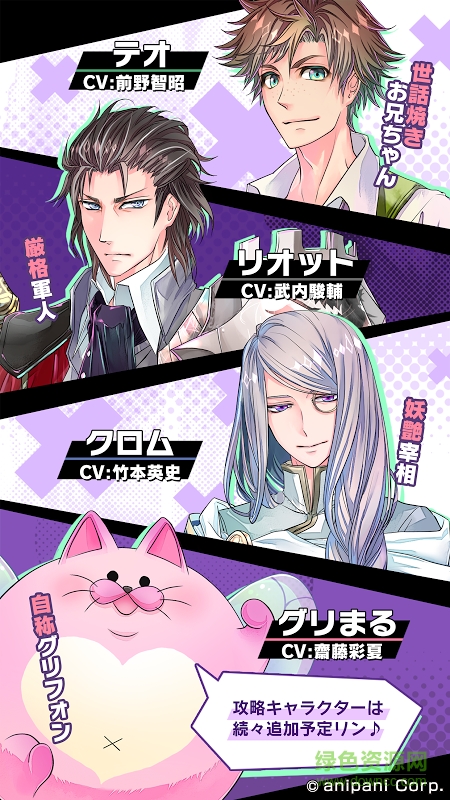 废柴王子(DAME×PRINCE)是由Anipani公司发行的一款乙女向恋爱模拟手机游戏。玩家将作为一名弱小国家的公主,为了守护自己的王国,不得不去攻略其他国家的王子。作为一款乙女游戏,那么外形帅气的各个男性角色一定是必不可少的,同时游戏还邀请了豪华的声优来为这些性格各异的王子进行配音。