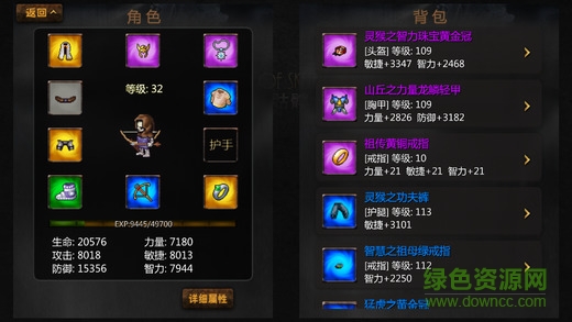 3.装备分灰、绿、蓝、紫、橙五种颜色,代表5种不同的品质,品质越高的装备,属性越强大。