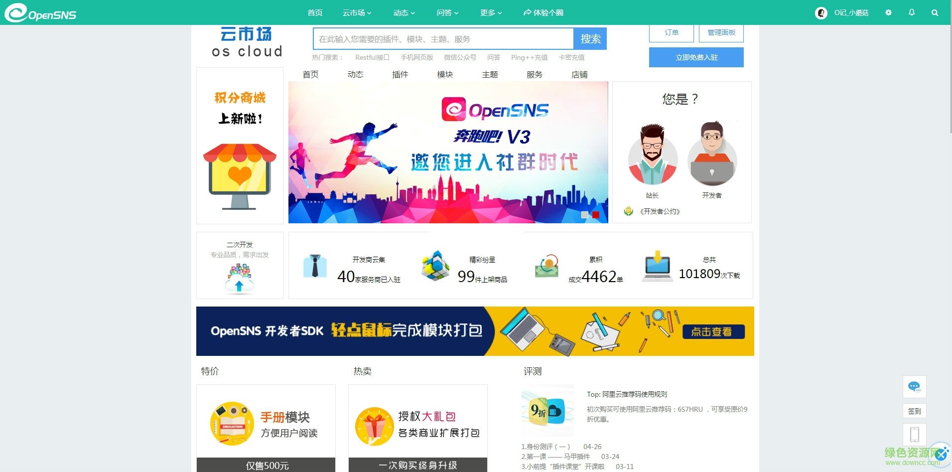 opensns是一款非常好用的开源社区服务软件,可以根据用户的身份进行个性化的定制服务,可以查看详细的运营数据,支持进行数据的分析,还有贴心的云市场,帮助用户轻松进行网站的拓展,欢迎有需要的朋友到绿色资源网下载使用!