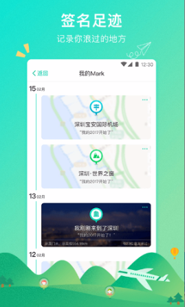 出行中所到之处Mark一下,记录下每个你浪过的地方,让附近的人发现你,邂逅奇妙的缘分
