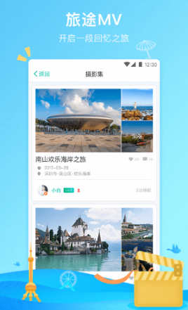 像MV一样将你旅途中的所有瞬间珍藏和分享,还有丰富的影集主题、动效