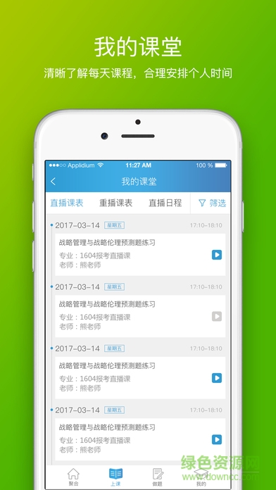 [重播课表]:在学员不能及时观看视频的情况下,给学员提供重播课程的便利性。