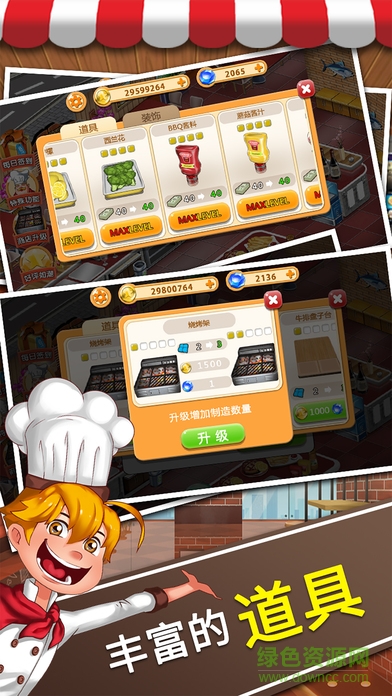 收集食品和厨房用具和室内升级!