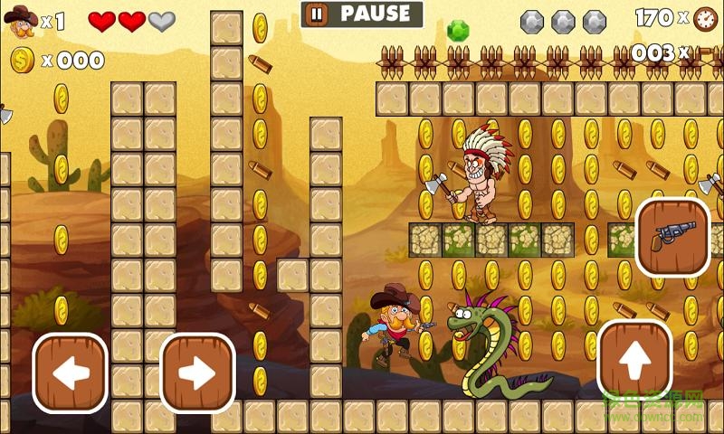 牛仔冒险是一款超好玩的动作冒险类的射击闯关游戏,这款游戏的画风十分有趣,非常简单的操作,丰富的游戏内容,给玩家带来了一次全新的游戏体验,喜欢这款游戏的朋友就赶快来绿色资源网下载试玩吧!