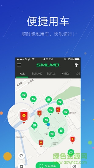 斯洛登单车是一款新型的共享单车租赁平台,单车覆盖广泛,智能定位快速发现可用车辆,扫码解锁轻松畅行,便捷出行畅享绿色生活。快来绿色资源网下载体验吧!