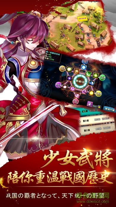 《战国英雄坛2》中武将都将以美少女的面貌呈现,丰富主线剧情、精英关卡、进阶合战、多人组队副本等,体验无限刺激快感!再透过招募武将姬、武将姬升星培养、装备进阶强化、多人组队副本还有探索幕府宝藏等等活动,让你除了收集美少女武将之外,更能够体验丰富主线剧情及精英关卡带来的征战乐趣!