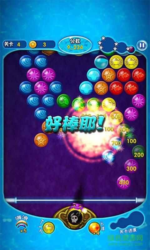 泡泡龙中文土豪版是一款经典好玩的泡泡龙游戏。玩家可以在海底开心消除泡泡,游戏中设置了上百个关卡,随着关卡的递增,泡泡下滑的速度也会越来越快的哦,玩家要抓紧时间去消除!