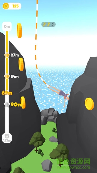 一年一度的世界级蹦极比赛开始了,身为极限运动爱好者的你毅然决然的前来参加挑战,为了证明自己的实力,你需要战胜所有的对手,比赛内容很简单就是看谁蹦极的高度最高即可,当然在下落的过程中你也可以利拥有自由灵活的技巧来收集空中出现的金币和道具,解锁跟多炫酷强力的人物角色。