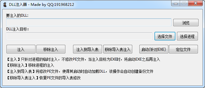 【注入】只针对进程的临时注入,不修改PE文件,当注入目标为EXE时,将启动EXE之后再注入