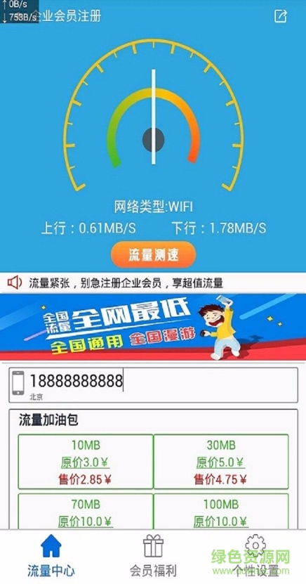 流量秒冲--让你不缺流量的APP!流量秒冲是一款专门为用户定制的集三网流量监控,流量提醒,网络测速的功能与一身的软件。流量快充是移动、联通、电信全面流量话费充值网购平台APP,高折扣、价格优惠。