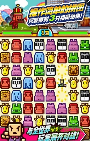 游戏画面十分可爱,你需要通过不断达成消除来积攒自己的战斗力,然后将对手打倒,COMBO越多,造成的伤害就越可观。游戏既简单又十分刺激,快来与世界上的玩家们一决高下吧!