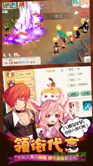 《魔力冒险团》是一款纯正日漫风回合制MMOrpg手游。SNK正版授权,八神庵、不知火舞、娜可露露、霸王丸等经典人物本色植入!继承并发扬《神雕侠侣》、《魔力宝贝》的玩法精髓,师门、捉鬼、家族……所有经典元素全面升级!海贼、火影、妖尾、猎人、圣斗士等主角声优加盟游戏配音,进入动漫回合的世界,协力冒险, 一起向二次元的世界进发吧!
