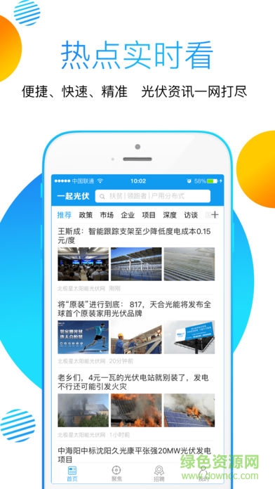 一起光伏手机版是一款光伏资讯服务手机软件,用户可以在这里查看最新的光伏资讯,可以查看最新的政策,还有深度的项目和访谈以及企业解析,欢迎大家到绿色资源网下载使用!
