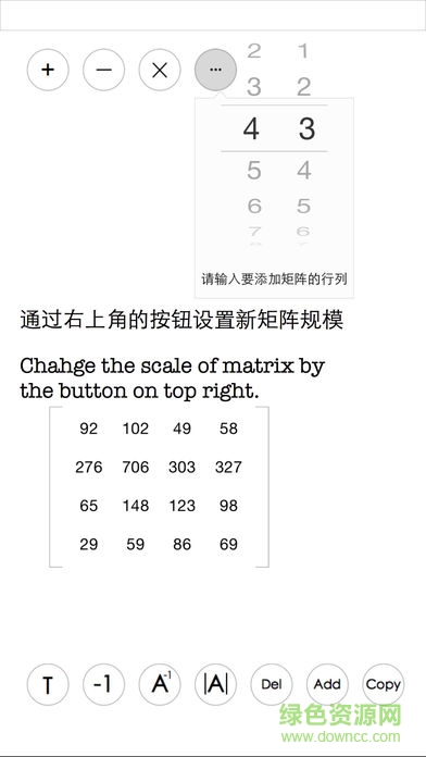 imats计算器安卓版是一款非常好用的矩阵计算app,支持在手机上进行矩阵的建立、编辑和删除,轻轻拖动即可,操作非常的方便,欢迎大家到绿色资源网下载使用!