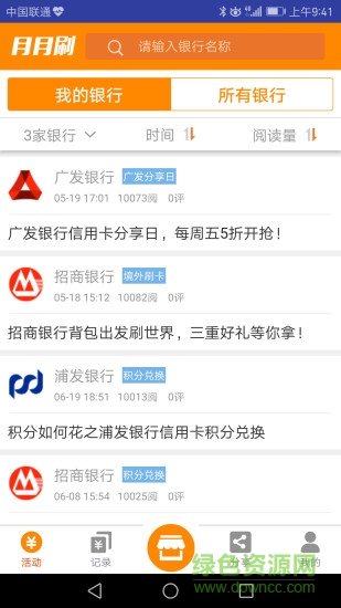 月月刷app是一款专注于信用卡消费的软件,海量优惠刷卡活动一览无余,记录查询方便快捷,还能分享和邀请好友赚钱呢,喜欢就来绿色资源网下载体验吧!
