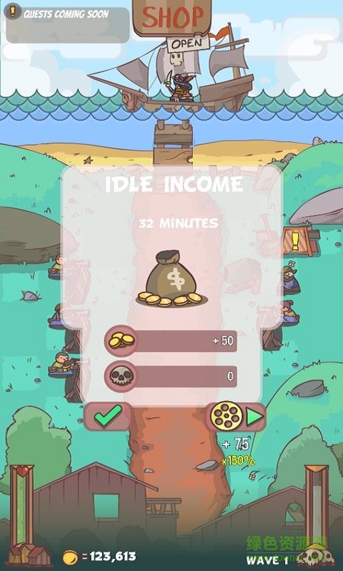 你需要不断点击屏幕来消灭海盗们,被消灭的海盗会有一定概率掉落金币!