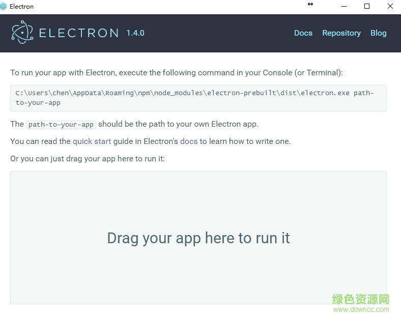 在项目文件夹下,通过npm install –save-dev electron-prebuilt命令安装项目所需的Electron环境;