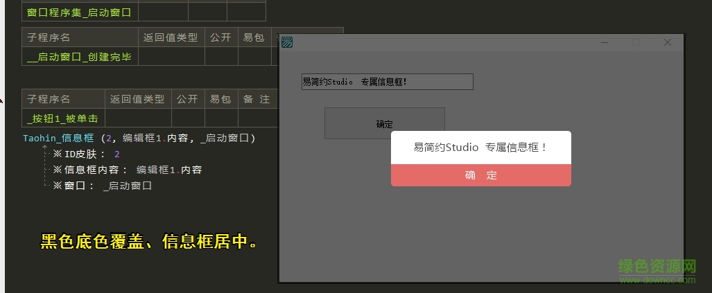 —— 由模块里面的 窗口组件、标签、按钮、编辑框等组件编写(不支持添加信息图标)
