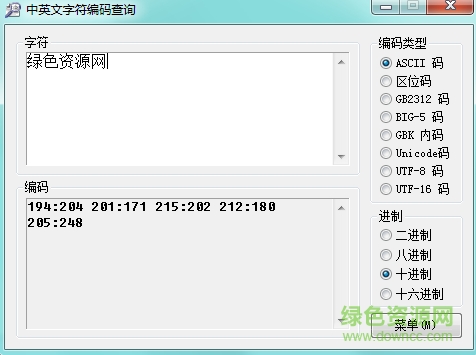 中英文字符编码查询是一款可以查询ASCII、区位码、二进制等字符查询和转换的工具,快速找到你需要的编码,软件绿色小巧使用方便,绿色资源网等您体验!