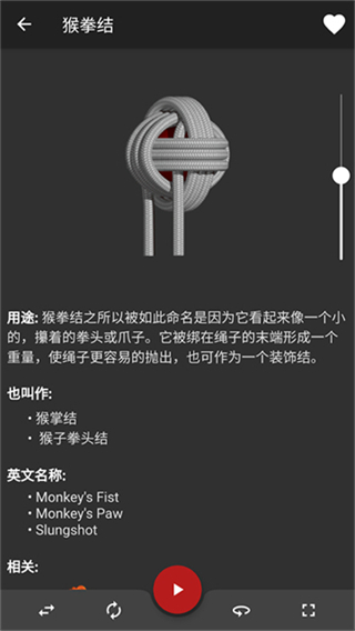 Knots 3D(3D绳结)是一款专业的3D绳结教学软件,以直观的动态教程攻克绳结学习难点,从基础结到专业救援结全覆盖,核心优势在于360度旋转的3D动画演示,支持调速、暂停和逐帧回看,配合真实绳索纹理与细节标注,让复杂步骤一目了然,让绳结从复杂技能变成可拆解的实用知识,是提升生活与户外技能的优质工具。