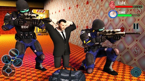拉斯维加斯风云,抓捕坏人执行正义吧。游戏中创建了一个非常真实的商场空间,玩家需要充分了解环境构造,在不惊动黑势力的情况下潜伏其中,利用强大的火力一击制胜,游戏非常考验玩家对时机的把握,注意不要伤害到人质才能顺利通关哦。