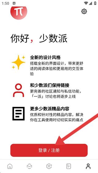 1、打开少数派APP,点击底部导航栏的我的选项,进入个人页面。