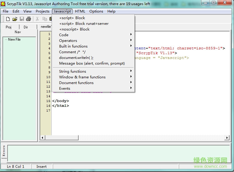 ScrypTik是一款脚本编辑工具,支持javascript、HTML、函数等对象的检测和设计,如果您有需要,在绿色资源网即可下载官方最新版哦!