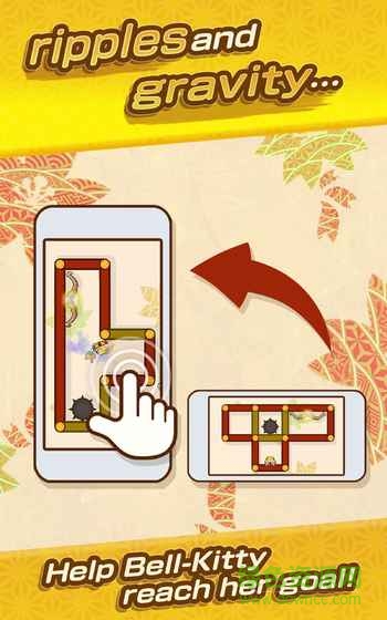 本作是一款和风的休闲游戏,需要玩家通过摇晃手机来进行游戏。游戏中玩家可以通过点击屏幕来产生波纹或者是前后左右摇摆手机,来控制铃铛猫在迷宫之中四处移动,前往最后的关卡。游戏中拥有多种不同主题的关卡,共计100道关卡,玩家可以一一挑战。