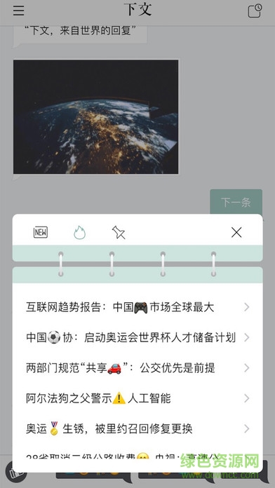 下文app是一款非常便捷的央广新闻手机软件,这里有最新最热的新闻资讯,以多样化的形式呈现每一条新闻,带来阅读新体验,还有贴心的想知道和应该知道功能,严格按照用户的阅读兴趣和习惯来推荐,喜爱的朋友赶快到绿色资源网下载体验吧!