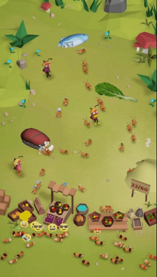 放置蚂蚁生活手游是非常好玩的休闲类型的手游,在这里玩家们需要帮助蚂蚁们在这里生活下去,面对各种各样的食物和地形玩家们需要更好的指挥着小蚂蚁们进行工作,不断的手机这些食物,将食物带回巢穴,不断的发展自己的蚁群。