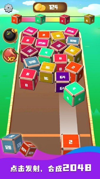 3、使用你的 3D 立方体瞄准!射击并击中相同颜色和数量的立方体!合并立方体得到2048!