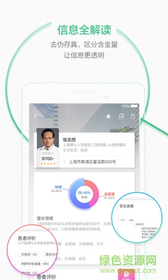 覆盖全国的绝大部分专业医生,并实时更新,人工智能加工过去行业不能生产的数据,多维度展现、客观、透明、公正。