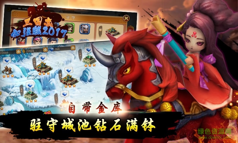 三国志加强版2017变态版是一款拥有超多兵种策略搭配的三国手游,超多英雄任你召唤,运筹帷幄兵种相克,打造你的绝佳排兵布阵,成就你的一代霸业,更多丰富手游福利在绿色资源网等你领取哦!快乐就是如此简单!