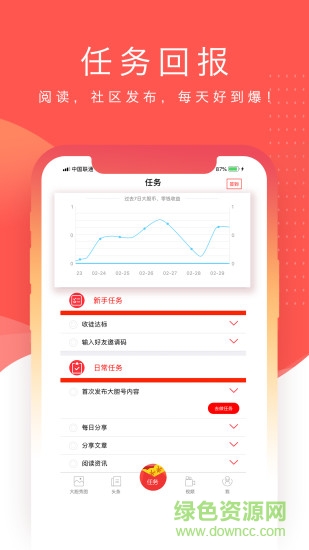 大胆头条app是一款资源丰富的手机头条app,在这里有各种不同类型的资讯等你来阅读,还可以将自己喜欢的内容与朋友一起分享来赚钱,感兴趣的用户赶快来下载体验吧!