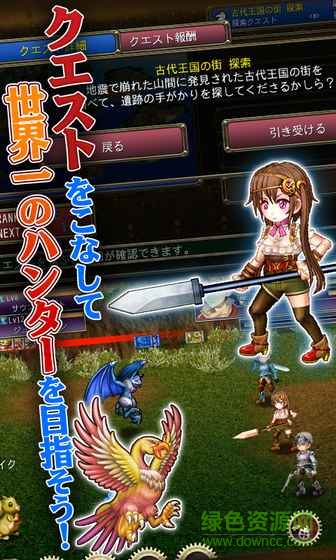主人公一行可以在工会中接受任务,完成任务可以提升自己的猎人等级,接受更难任务。以世界第一的猎人为目标前进吧!