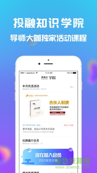 投融活动沙龙、企业知识学院,整合优质资源,把握企业发展命脉。