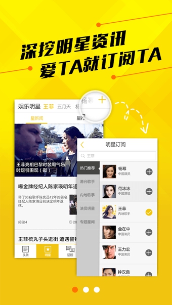 娱乐圈圈:如果你是追星一族或是喜欢了解娱乐资讯,那么这款软件是个不错的选择,这里集合了非常多最新热门的娱乐资讯,让你第一时间了解你的TA的相关信息。