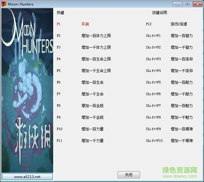 月之猎人二十项修改器是一款功能强大的游戏辅助工具,提供一键修改生命、信仰、魅力、精神等功能,热键操作简单全版本通用,轻松帮助玩家闯关升级,欢迎来绿色资源网下载!