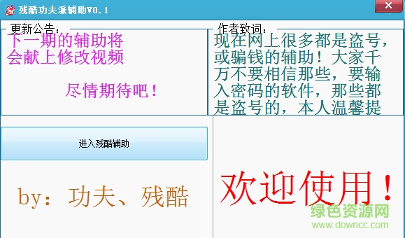 残酷功夫派辅助是一款支持页游功夫派游戏的辅助工具,让玩家可以秒杀全屏、快速升级、合成紫宠神装、无限功夫豆等,还能支持游戏双开,来 绿色资源网下载体验吧!