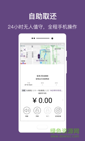 通过APP让用户迅速租车用车。APP开车门,一键启动,随租随还,按分钟及里程计费,自助缴费。让出行更简单便捷。
