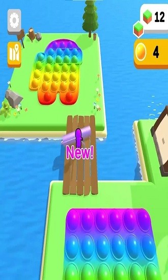 指尖岛游戏中你需要控制角色拿起滚筒去压碎那些解压泡泡,这样你就可以获得金币和木头,用这些资源你可以任意建设你的小岛,游戏巧妙的将解压泡泡和经营建筑结合起来,让你在游戏过程中也可以释放你的压力,是不是感觉很不错,那就快来下载玩玩吧!