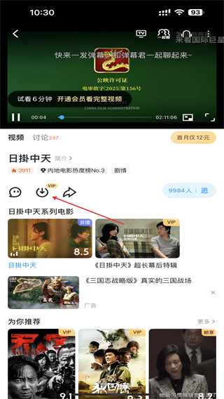 3、进入播放的页面内,点击下方下载的按钮即可开始下载。
